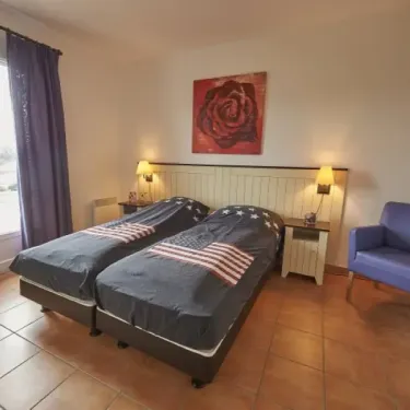 Surface de 125 m², 3 chambres avec deux lits simples, linge de lit, 3 salles d'eau avec lavabo, cabine de douche ou baignoire, WC, terrasse couverte et salon de jardin, deux chaises longues...