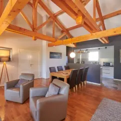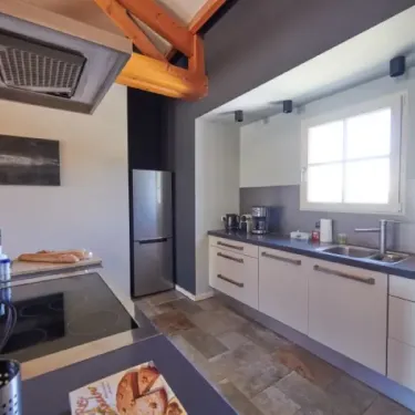 - Plaques cuisson, micro-ondes, cafetière, réfrigérateur/congélateur, lave-vaisselle, vaisselle et ustensiles de cuisines inclus
