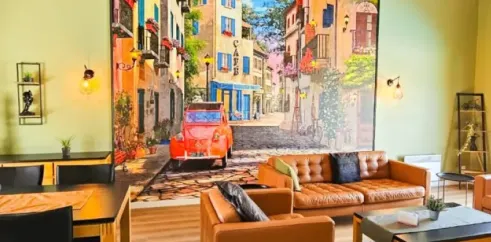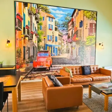- Plaques cuisson, cafetière, réfrigérateur-congélateur, lave-vaisselle, micro-ondes, bouilloire, vaisselle et ustensiles de cuisines inclus
