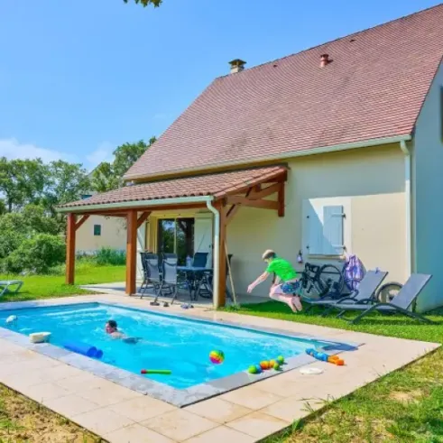 Location Villa indépendante avec piscine 2 Salles de bain - 3 Chambres - 6 Personnes au camping Parc Domaine de Lanzac, Lot 46