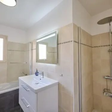 - Salle d'eau avec lavabo, douche, bain et WC séparés