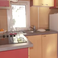 24 m² de surface, chambre avec 1 lit double, 1 chambre avec 2 lits simples, coin cuisine, salle d'eau, WC séparés, terrasse intégrée de 6 m²...
