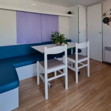 - Banquette, table, chaises