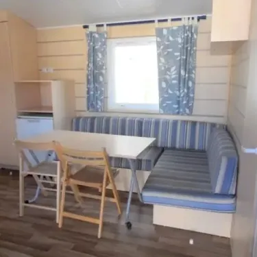 - Coin repas avec banquette-lit pour 2 personnes, chauffage, télévision, climatisation