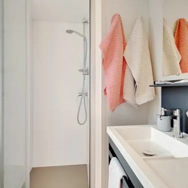 27 m² de surface, 1 chambre avec 1 lit double, 1 chambre avec 2 lits simples, séjour convertible en lit 2 places, coin cuisine, salles de douche avec WC, terrasse...