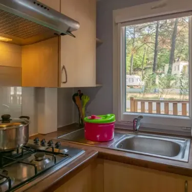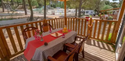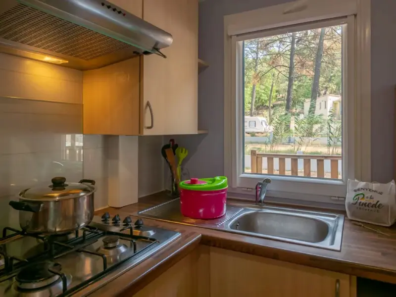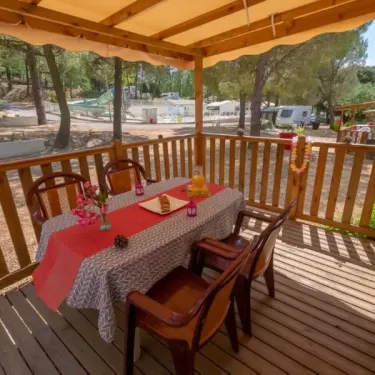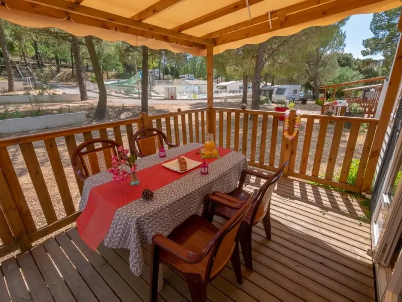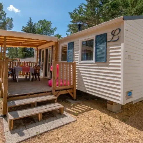 Location Mobil Home Aqua 2 Chambres - 4 Personnes - Terrasse semi-couverte au camping la Pinède en Provence, Vaucluse 84
