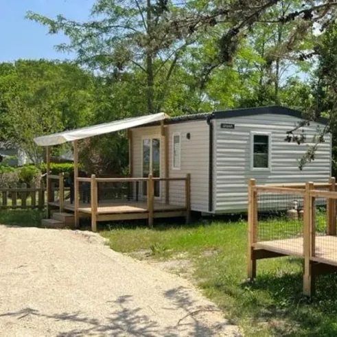 Location Mobil Home Aqua 2 Chambres - 4 Personnes - Terrasse semi-couverte au camping Les Franquettes, Gironde 33