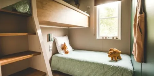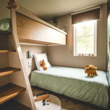 - Enfants : 1 chambre avec 2 lits simples 80 x 190 cm + 1 chambre avec 1 lit simple bas 80 x 190 cm et 1 lit simple haut 80 x 190 cm