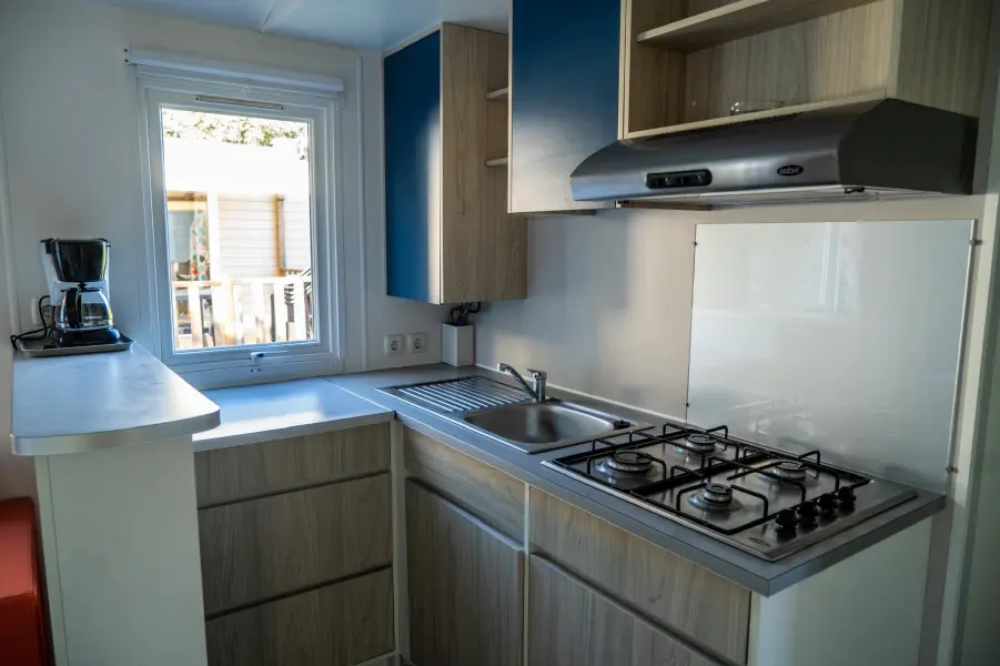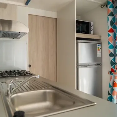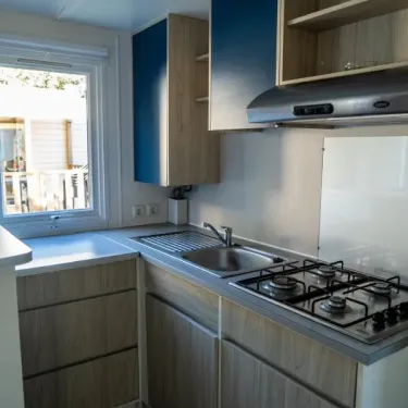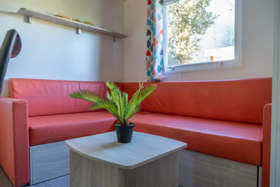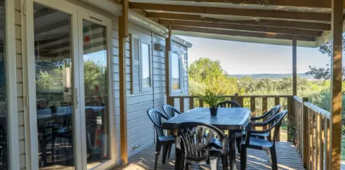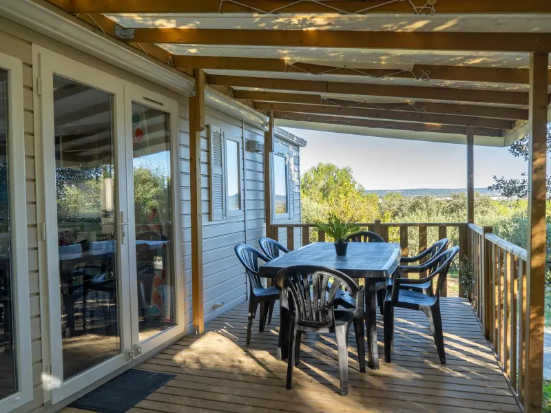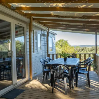 Location Mobil Home Aqua 3 Chambres - 6 Personnes - Terrasse semi-couverte - Climatisation au camping Mer et Camargue, Gard 30