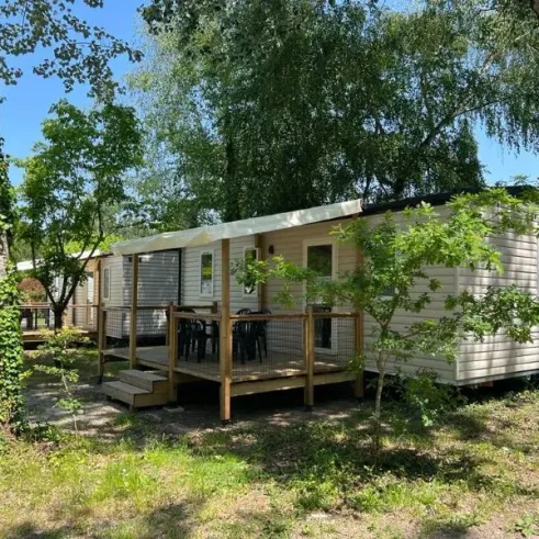 Location Mobil Home Aqua 3 Chambres - 6 Personnes - Terrasse semi-couverte au camping Les Franquettes, Gironde 33