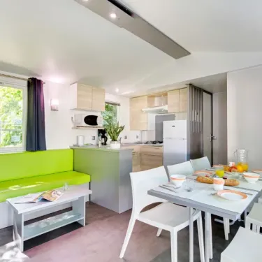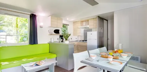 Location Mobil Home Aqua 3 Chambres - 6 Personnes - Terrasse Semi-couverte au camping Yukadi Villages Le Moténo, Morbihan 56