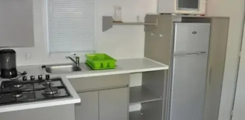 - Plaques gaz, micro-ondes, réfrigérateur, vaisselle et ustensiles de cuisine inclus, cafetière