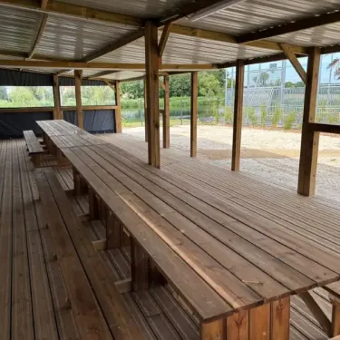L'hébergement est situé en face du terrain de foot. Le terrain de foot est fermé de 22h00 à 9h00.