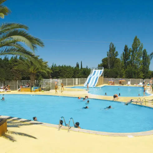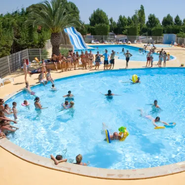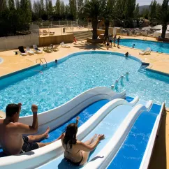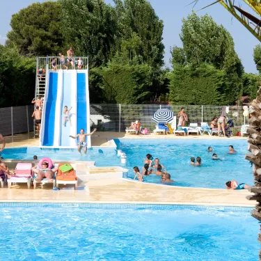 Profitez selon les conditions climatiques de deux piscines dont une avec pentaglisse et pataugeoire.