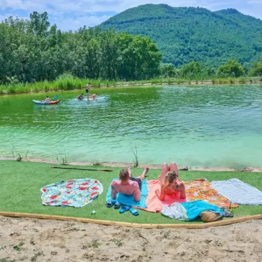 - Espace aquatique avec piscine, pataugeoire et lac de loisirs aménagé avec plage