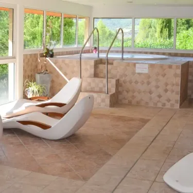 - Terrasse couverte ou stores, salon de jardin, chaises longues