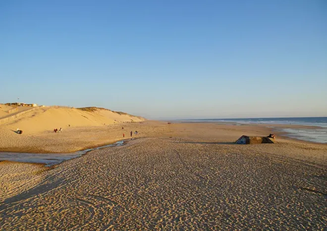 Cette plage est l’une des plus sauvages de la côte landaise. Elle se trouve au beau milieu de la Réserve Naturelle du Courant d’Huchet. Relativement peu fréquentée même en pleine saison, cette plage est tranquille, intime et prisée par les couples d’amoureux. Elle est également connue pour ses très beaux couchers de soleil.