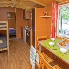 19 m² de surface, une chambre avec 1 lit double, 2 lits superposés dans la pièce principale, cuisine équipée, sans sanitaires, terrasse...